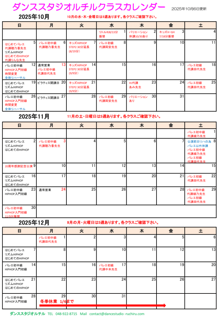 ※11/8(土)は20周年感謝記念公演前日リハの為、ジュニアジャズ、シアタージャズ、ビギナージャズ、HIPHOPは休講です。